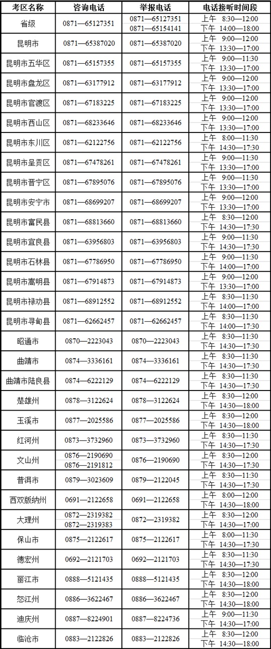 云南省2025年成人高考考試期間咨詢及舉報聯(lián)系方式