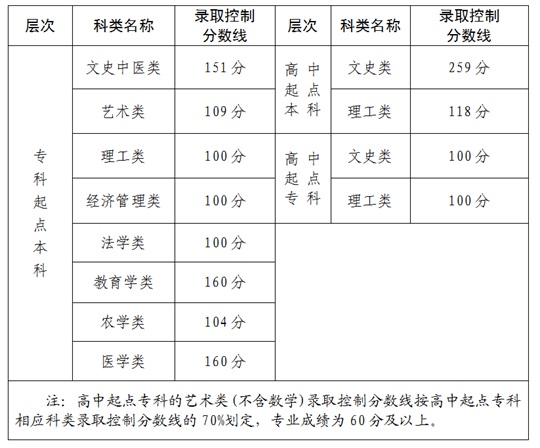 經福建省教育廳專題會議研究,確定2025年福建省成人高校招生各類錄取控制分數線如下: