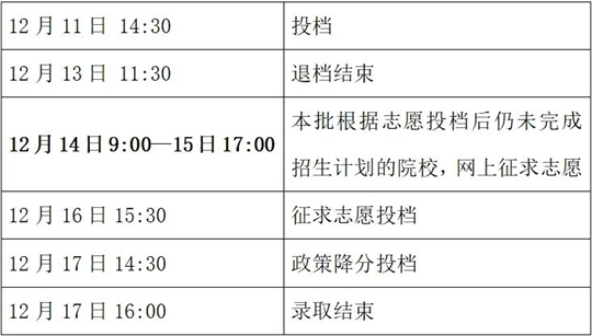 第二批:高中起點專科(12月11日—17日)