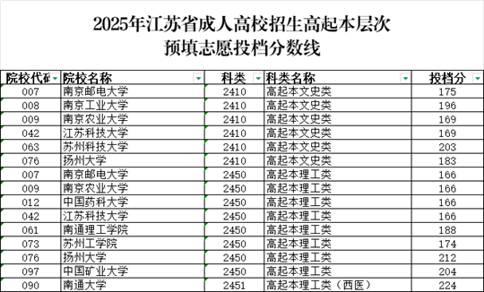 | 2025年江蘇省成人高校招生高起本層次預(yù)填志愿投檔分?jǐn)?shù)線 |