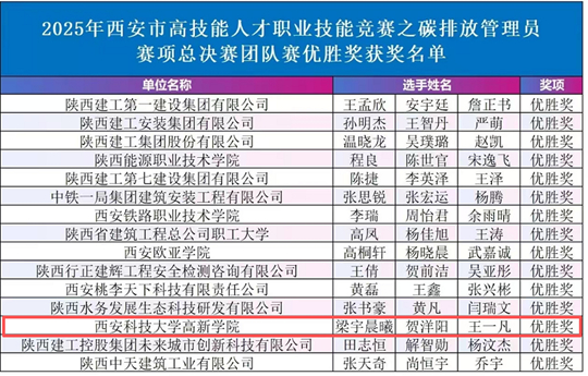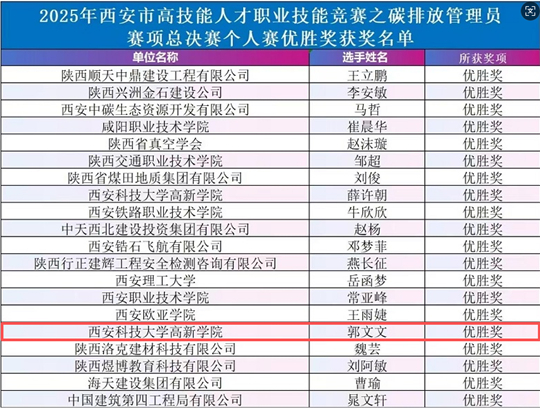 | 喜報!西安科技大學高新學院科技與工程學院城建系在2025年西安市碳排放管理員競賽中斬獲兩項優勝獎! |