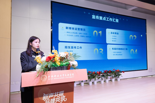 為提升宣傳工作隊伍專業素養,大會還設置了業務培訓環節。華商網新聞互動中心副總監劉永拓以《打造暖心爆款短視頻 讓校園新聞澎湃大流量》為題,結合豐富案例,從短視頻選題、拍攝技巧、剪輯思路、傳播規律等方面進行了深入淺出的講解,為師生帶來了極具實用性的專業指導;宣傳與品牌建設辦公室副主任梁丹圍繞“新聲共振 品牌共筑”主題,詳細解讀了2026年度品牌宣傳計劃,明確了工作重點與實施路徑。