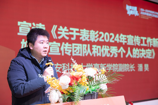 會上,學院副院長潘昊宣讀了《關于表彰2024年宣傳工作新媒體宣傳團隊和優秀個人的決定》。隨后,大會進入頒獎環節,對在宣傳工作中表現突出的集體與個人進行隆重表彰各獎項分批次有序頒發,現場掌聲陣陣,充分彰顯了學院對宣傳工作的高度重視與對先進典型的激勵認可。