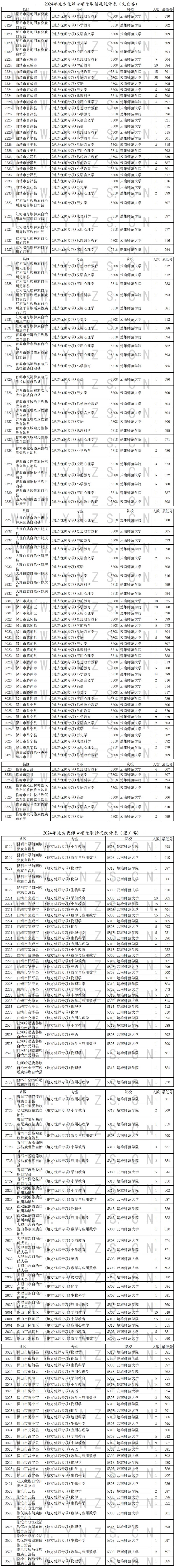 2024年7月9日云南省普高錄取日報-地方優師專項錄取情況統計表