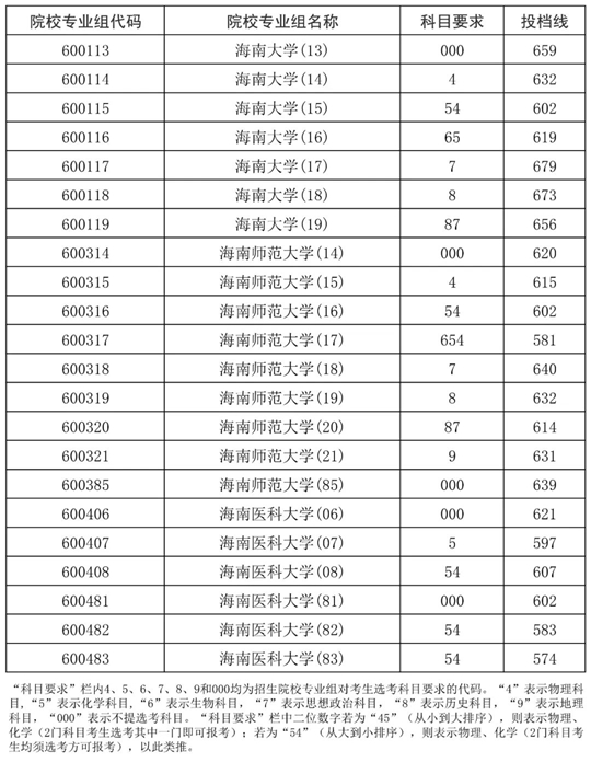2025年海南省普通高校招生錄取地方專項計劃平行志愿院校專業組投檔分數線