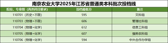 | 南京農(nóng)業(yè)大學(xué)2025年江蘇省普通類本科批次投檔線 |