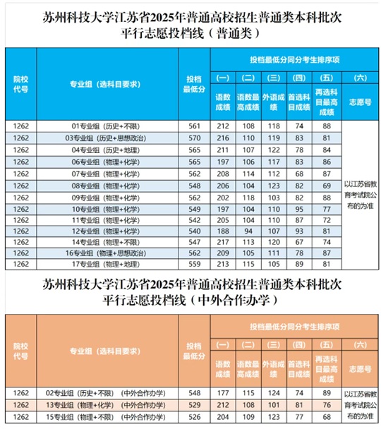 | 蘇州科技大學(xué)江蘇省2025年普通高校招生普通類本科批次平行志愿投檔線 |