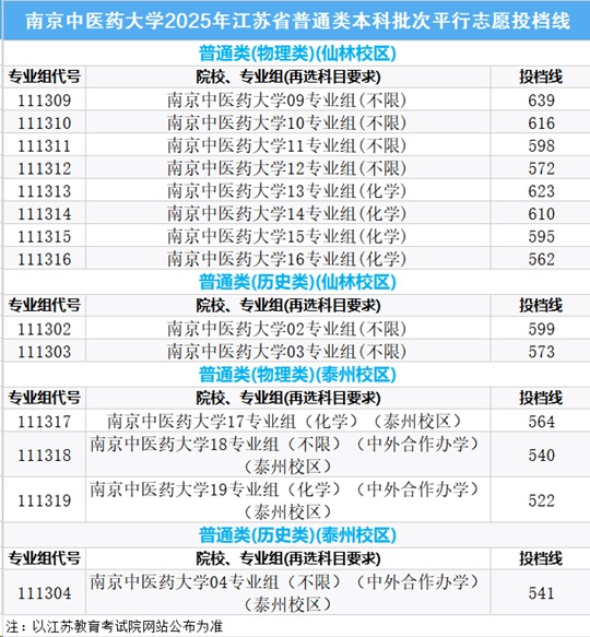 | 南京中醫藥大學2025年江蘇省普通類本科批次平行志愿投檔線 |
