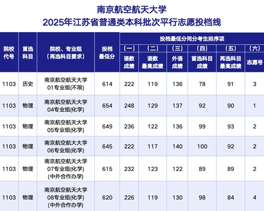 | 南京航空航天大學2025年江蘇省普通類本科批次平行志愿投檔線 |