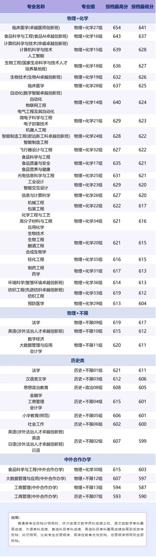 江南大學2025年江蘇普通本科平行志愿投檔線
