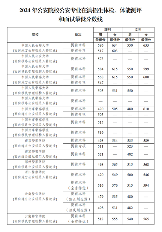 附件:2024年公安院校公安專業在滇招生體檢、體能測評和面試分數線
