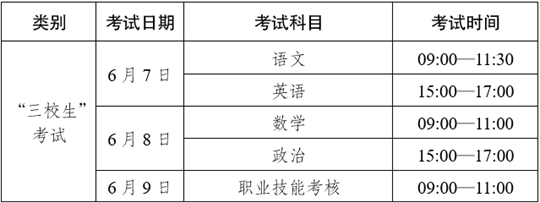 (二)“三校生”考試各科目考試時間(北京時間)安排