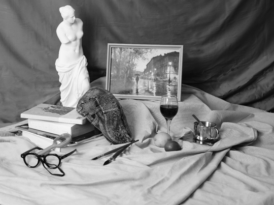 試題中選用的書本、水果、不銹鋼咖啡杯等不同形態(tài)的物體,其中既有自然形態(tài),又有設(shè)計(jì)形態(tài),能夠多層面考查學(xué)生運(yùn)用色彩塑造形體的能力;試題中靜物有硬朗的石膏、挺括的牛仔帽、柔軟的襯布等,能夠很好地考查學(xué)生運(yùn)用色彩工具對(duì)不同質(zhì)感物體的深入刻畫與表現(xiàn)能力;《米洛斯的阿芙洛狄忒》雕像是古典美術(shù)的典型代表,有著近乎完美的形態(tài)比例,在不同版本的高中美術(shù)教材中均有出現(xiàn),可以考查學(xué)生對(duì)教材的熟悉程度和應(yīng)有的藝術(shù)素養(yǎng),同時(shí)白色石膏像用色彩的方式來表現(xiàn),能有效考查學(xué)生色彩技法運(yùn)用能力及畫面的藝術(shù)表現(xiàn)力;帶框風(fēng)景畫放入畫面,在以靜物為主體的試題中加入了風(fēng)景元素,使畫面的整體節(jié)奏、色彩產(chǎn)生了更豐富的變化,可以進(jìn)一步考查學(xué)生對(duì)畫面的整體把控和組織能力。