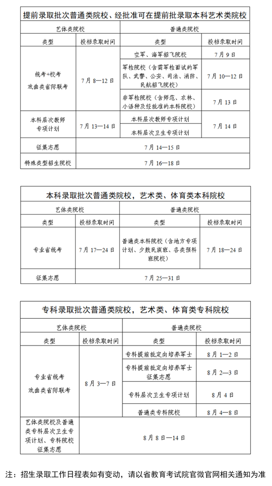 廣東省2025年普通高校招生錄取工作日程表