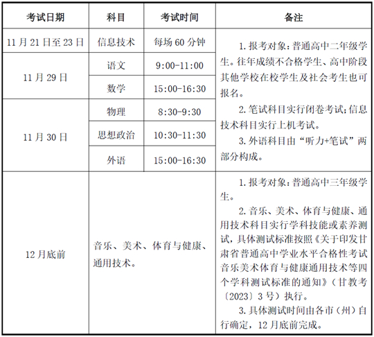 附件:2025年冬季甘肅省普通高中學業水平合格性考試科目及時間安排