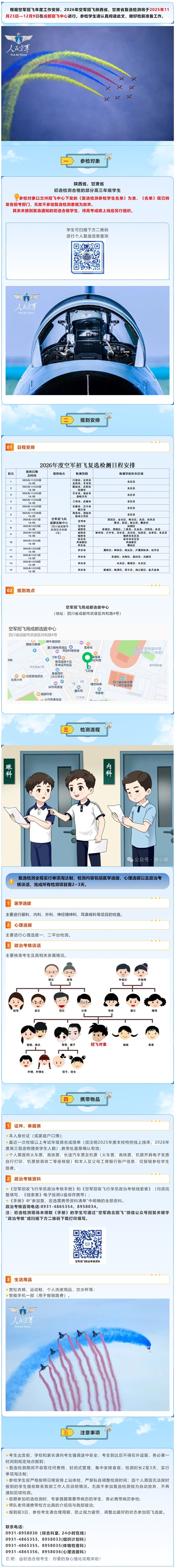 2026年空軍招飛陜西省、甘肅省復選檢測安排