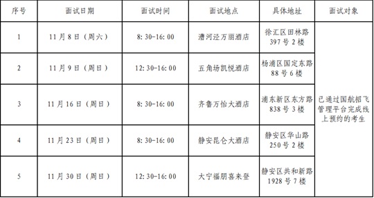 (二)預選初檢:登錄“國航招飛管理平臺”填寫信息、預約場次,已預約考生嚴格按照預約時間參加國航招飛辦公室組織的現場初檢面試(含飛行職業能力傾向測試、英語測試、面試等);