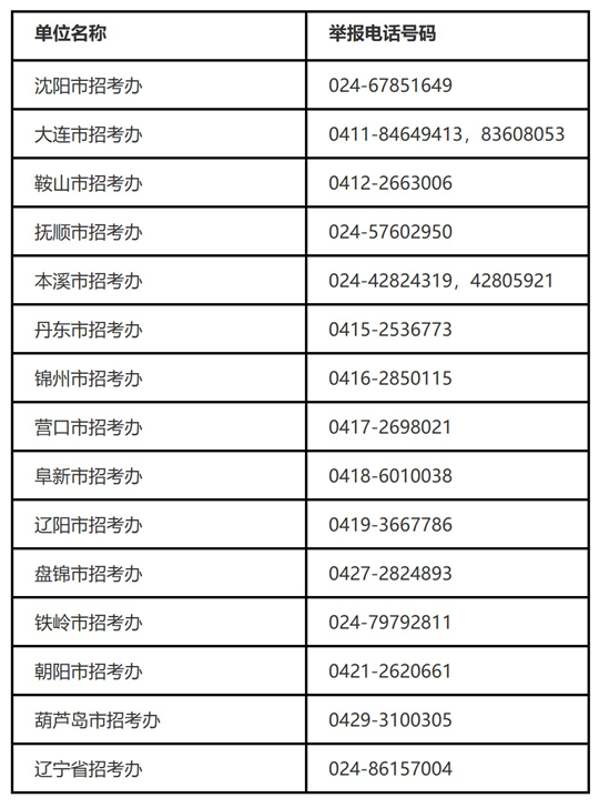 | 遼寧省2026年全國碩士研究生招生考試舉報電話 |