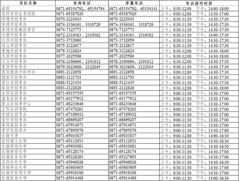 云南省2026年碩士研究生招生考試咨詢及舉報聯系方式(12月15-21日)