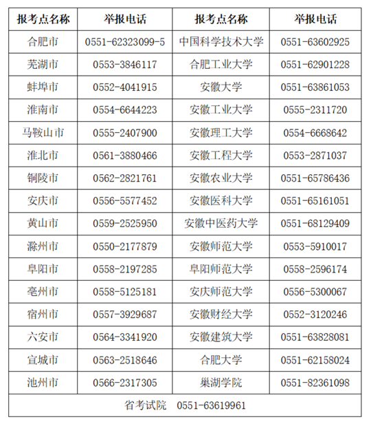 安徽省2026年碩士研究生考試期間考試違規違法行為舉報電話