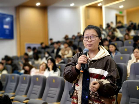 隨后,國際交流學院劉一弘院長結合自身在德國FOM大學的訪學經歷,分享了跨文化交流中的觀察與感悟。她從學術氛圍、教學理念、師生互動等多個維度,對比了中德教育的異同,為在場學生開展跨文化交流提供了全新的視角。