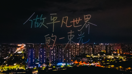 當(dāng)晚最為震撼和驚喜的環(huán)節(jié),當(dāng)屬666架無人機騰空而起,以光為畫筆,拼出“歐亞30歲生日快樂”“和而不同”“做平凡世界的一束光”等字樣,以及歐亞1995-2025的時光軌跡、校園標志建筑和巨型的生日蛋糕,照亮雨后初晴的夜空,點亮歐亞光之盛典最動人的篇章。據(jù)了解,這些無人機表演是由1998級校友、河南校友會會長葉百海與校友楊鵬程特別贊助。