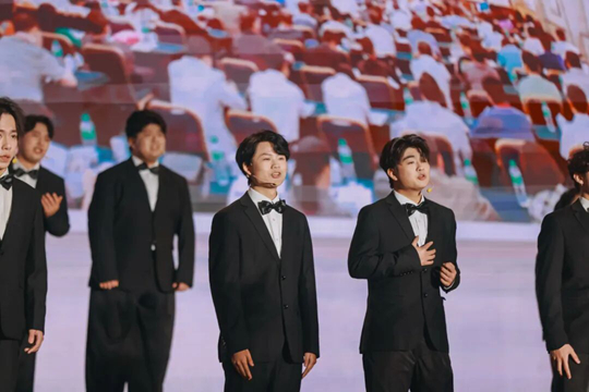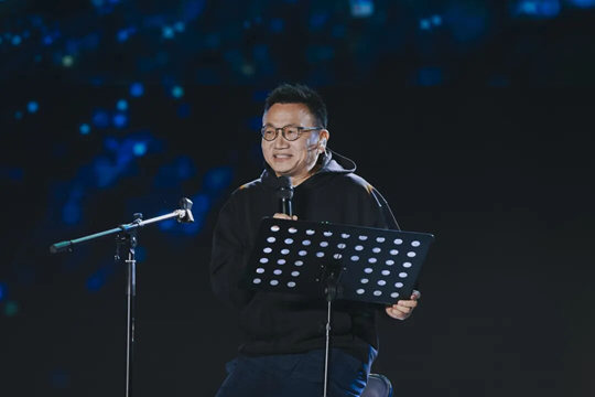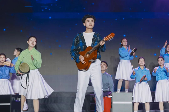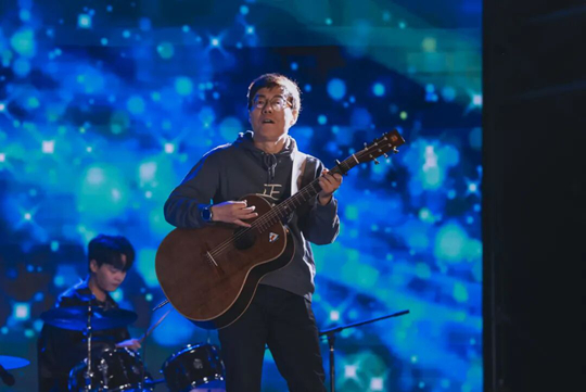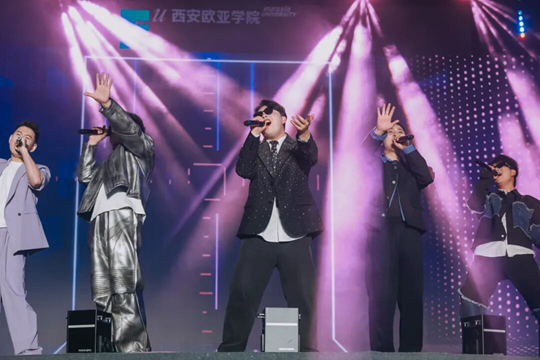 隨后,胡建波和副校長李正、吉他社的同學(xué)一起,演唱了影響一代人的搖滾金曲《藍蓮花》,用音樂致敬30年的青春。歌聲響起,燈光星海閃爍。那一刻,音樂不再只是旋律,而是一種力量——來自歐亞的信念與精神。歌聲穿越時間,連接了30年的追夢者,也照亮了此刻的青年面龐。