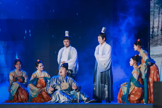 “唐詩里的長安,是朝思暮想,也是蕩氣回腸……”話劇團表演者衣著漢服,借現(xiàn)代話劇的敘事語言,探索長安這片與歐亞共生的土壤,拾起古人對世界的感知以及生活的熱愛。