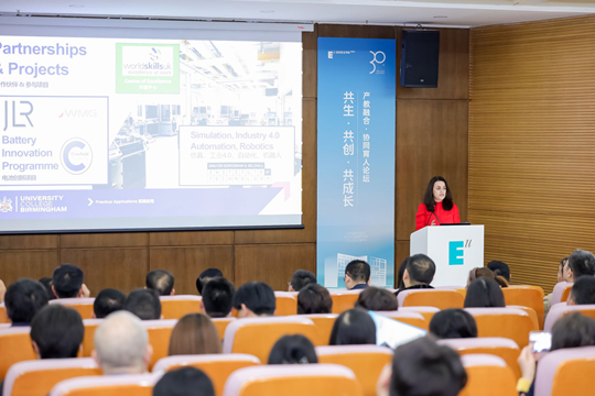 英國伯明翰大學學院工程、數字與可持續建筑學院執行院長Rosa Wells教授率先分享了英國高校的實踐經驗。她強調,該校以“產業需求驅動課程設計”為核心原則,通過組建產業合作委員會、參與政府資助的技能缺口調研項目,確保課程內容與技術發展同步。“我們打造了工業4.0學習工廠、電池制造技能培訓等特色實踐平臺,讓學生在跨專業協作與模擬職場場景中提升實操能力。”Wells特別提到,學校通過“雙向指導”模式,既推動博士生協助教師掌握前沿技術,也促進教師在學術上支持博士生成長,實現教學相長。