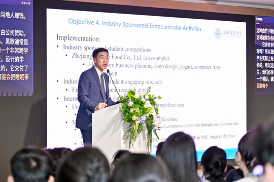 溫州肯恩大學學術事務副校長楊毅欣教授結合中美合作辦學經驗,闡述了產學研深度融合的育人路徑。他介紹,溫肯每年組織30至40次企業走訪,與Apple、華大基因等48家知名企業建立了合作關系,將真實產業項目融入課堂教學。“我們開設了跨學科的‘人類壓力測試與評估’課程,舉辦24小時企業贊助的黑客松競賽,讓學生在解決實際問題中培養創新能力。”楊毅欣強調,通識教育是培養學生批判性思維的關鍵,溫肯設置的45學分通識課程占總學分三分之一,并實現AI通識課程全覆蓋,以助力學生適應智能時代的發展需求。