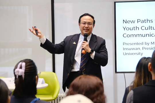 陜西網(wǎng)國(guó)際傳播外宣平臺(tái)“長(zhǎng)小安”項(xiàng)目在工作坊正式亮相,陜西網(wǎng)國(guó)際傳播中心負(fù)責(zé)人王湧以“一事一生”的慢視角向泰方嘉賓傳遞陜西文化,展示東方美學(xué)。泰國(guó)西北大學(xué)校長(zhǎng)阿披察·因蘇萬、跨學(xué)科研究學(xué)院院長(zhǎng)緹拉拉·薩查瓦提也分享了他們多年來在創(chuàng)新管理、數(shù)字傳媒與跨境旅游等領(lǐng)域的學(xué)術(shù)成果與教育理念,并通過傳統(tǒng)服飾、特色美食等具象載體,為大家生動(dòng)展現(xiàn)了泰國(guó)文化的魅力,讓“微笑之國(guó)”的風(fēng)情近距離觸達(dá)現(xiàn)場(chǎng)每一位師生。