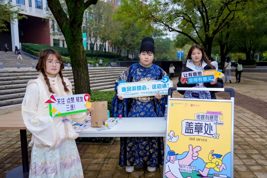 從梧桐街區(qū)序章的唐詩光影長(zhǎng)廊,到大學(xué)生活動(dòng)中心下沉廣場(chǎng)主章的千燈盛景,10月23日這場(chǎng)唐風(fēng)游園會(huì),恰似一場(chǎng)穿越千年的傳媒雅集,在媒介與身體的對(duì)話實(shí)驗(yàn)中,傳媒人以最古老的方式,實(shí)踐著最當(dāng)代的傳播命題。