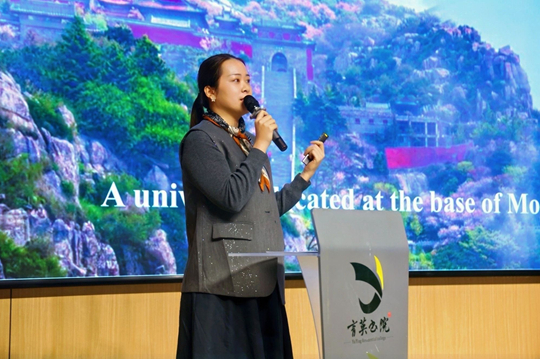 泰山科技學院為承接此次研討班做了精心細致的準備。在歡迎儀式上,學校有關負責人向全體學員表達了誠摯的問候和熱烈的歡迎,介紹了學校“信息產業商學院”辦學定位和“培養數字經濟時代高情商經營管理人才”的辦學使命,以及“四位一體雙院制”高質量人才培養體系,以及近年來在辦學實踐中取得的成果和有關留學生來校學習政策。學校快樂、時尚、活力、放松的大學理念,受到了來賓的高度贊揚。