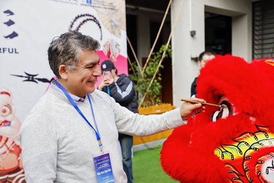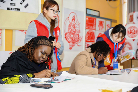 在校園參訪中,嘉賓們走進泰山科技學院新教育實驗展館,直觀感受“生活即教育”的實踐理念;通過泰山巨幕影談電影放映、Disco House主題派對、岱廟參觀促進跨國互動;更親身參與南派醒獅、泰山碑刻拓印、刻紙等非遺體驗,沉浸式感受中華文化的獨特魅力。聯合國教科文組織教師教育中心的Jordan Naidoo由衷贊嘆:“這些藝術品,尤其是剪紙,圖像非常漂亮。學生們對自身文化的熱愛令人感動。”