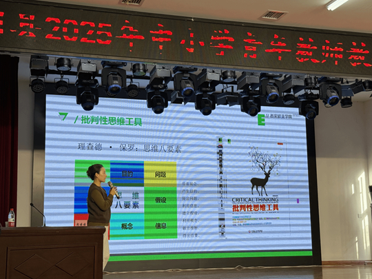 由劉軒、郝婷婷老師開設的《新課標背景下批判性思維素養的落地與教學實踐》,為教師提供了將批判性思維從理論落地到實踐的可操作路徑。課程以新課標要求為背景,系統闡釋了批判性思維的內涵與核心框架,重點解析“目的、問題、觀點、信息、概念、推理、假設、結論”八要素的邏輯結構及應用方式。課程通過真實學科案例、PBL項目式學習設計以及思維導圖實踐任務,展示了如何將批判性思維自然融入語文、數學、科學等課堂教學。與此同時,教師們還學習了批判性思維素養量規的使用方法,為學生思維能力的監測與反饋提供了科學依據。