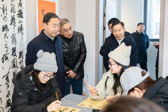 常書銘一行走訪了烏馬河非物質文化遺產館各具特色的6個展廳,現場觀看了學生練習國家級非遺項目形意拳,對學校將發源于太谷的形意拳引進校園并作為全校學生必修課、傳承非遺文化的做法表示贊許。他強調,非遺文化既是傳承中華優秀傳統文化的重要載體,更是激活地方產業發展的寶貴資源,要持續深挖非遺文化蘊含的雙重價值,既要充分釋放非遺文化的育人潛力,將其融入人才培養全過程,以文化浸潤提升人才綜合素養,也要強化其產業賦能作用,讓非遺中的創意理念、技藝精髓與地方特色產業深度融合,推動傳統文化在校園育人與地方振興的雙向互動中煥發新活力。