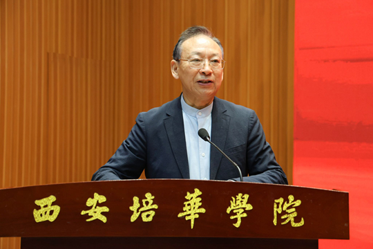 西安培華學(xué)院理事長(zhǎng)姜波致歡迎詞。他對(duì)江必新教授再次蒞臨培華表示了熱烈歡迎,表示培華堅(jiān)持“以人為本、以德為先”的辦學(xué)理念,堅(jiān)持依法治校,始終秉承了紅色教育、女性教育、職業(yè)教育三大基因,傳承姜維之先生的精神內(nèi)核,積累了深厚的歷史底蘊(yùn)。學(xué)校法學(xué)專業(yè)自1999年設(shè)立以來(lái),不斷創(chuàng)新和發(fā)展,為社會(huì)培養(yǎng)了一大批高素質(zhì)、復(fù)合型、應(yīng)用型的法治人才。他表示,此次報(bào)告會(huì)對(duì)深化法治教育、提升師生法治素養(yǎng)具有重要意義。