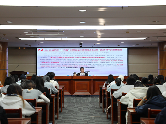 整場宣講內容扎實、邏輯嚴謹,既具備理論深度,又貼合學生實際。同學們會后紛紛表示,對黨的二十屆四中全會精神有了更加清晰的認識。2024級大數據管理與應用專業何曉靖表示,“聆聽完校長的宣講后,我深受啟發,對全會精神、‘十五五’時期的關鍵地位以及經濟社會發展的指導方針、主要目標和重大舉措有了更清晰的認識。今后,我將謹記校長的勉勵,堅定信念,挺膺擔當,既埋頭讀書,也抬頭看路,與國家發展同頻共振,為推進中國式現代化貢獻青春力量。”2024級英語專業王金超表示,“校長的宣講,讓我對黨的二十屆四中全會精神有了更深刻的理解,也清晰地認識到青年學生在時代發展中的角色定位。未來,我將立足學業、勤學善思,用實際行動響應學校號召,為學校高質量發展添磚加瓦。”(記者 趙程遠)