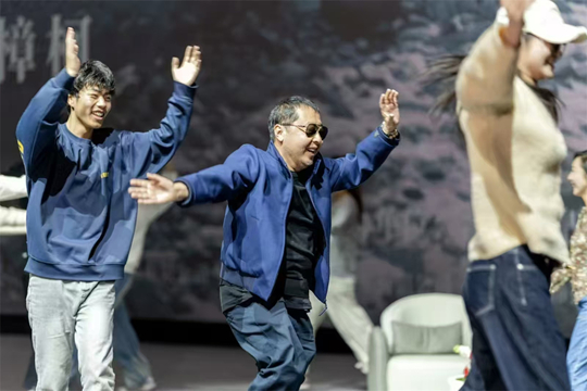 音樂響起,晉中信息學(xué)院學(xué)子為賈導(dǎo)送上一份特別驚喜,以群舞演繹《Go West》,在大家熱烈情緒的感染下,賈樟柯導(dǎo)演起身,加入到大家舞蹈的隊(duì)伍之中,全場(chǎng)齊聲三次呼喊的“賈科長(zhǎng),歡迎回家”瞬間將現(xiàn)場(chǎng)氛圍推向高潮。
