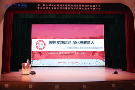 11月27日至29日,第七屆全國民辦高校思想政治理論課建設研究會年會暨馬克思主義理論學科建設與思政課實踐教學研討會在廣州成功舉辦。本次會議由全國民辦高校思想政治理論課建設研究會主辦,廣州商學院承辦,來自全國70多所高校的300余位專家學者齊聚一堂,圍繞“貫徹落實黨的二十屆四中全會精神推動思政課高質量發展”展開深入研討。西安培華學院馬克思主義學院教師張夢珅受邀參會,并在思政課實踐教學經驗交流環節作專題匯報,全面展示了西安培華學院在思政課實踐教學體系建設方面的創新探索與豐碩成果。