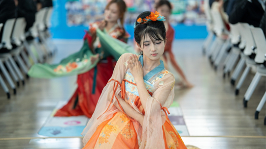 文化的對話在衣袂流轉間悄然升溫,《錦行》漢服秀以現代設計語言重構傳統服飾之美,中華美學的雅致傳承隨衣擺流動,讓中外師生直觀感受中式韻味的獨特魅力。