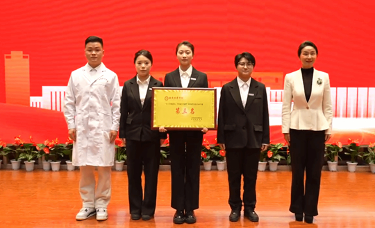 黨委副書記、副校長(zhǎng)姚文靜為醫(yī)學(xué)院頒發(fā)團(tuán)隊(duì)三等獎(jiǎng)