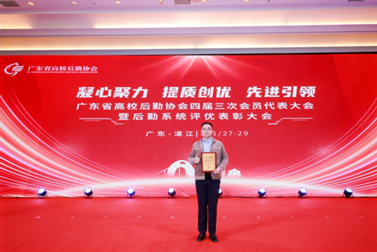 11月27日至29日,2025年廣東省高校后勤協會四屆三次會員大會暨后勤系統評優表彰活動在湛江舉行,全省高校后勤協會140余家會員單位360余名代表見證頒獎盛典、交流經驗成果、共話后勤改革發展。廣州城市理工學院后勤處設備科劉廣老師獲評“2025廣東高校后勤管理菁英獎”,由廣州壹心膳食管理有限公司運營的廣州城市理工學院第一食堂獲評“2025廣東高校餐飲服務示范項目”。