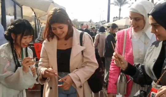 最讓她自豪的,是輔導學生參加埃及大學生中文小品比賽、備戰埃及賽區漢語橋比賽的那些日夜。從專業知識到中華才藝,從漢語演講到文化理解,她與學生一起打磨每一個細節。當學生最終捧回獎項時,那份喜悅跨越了語言和國界。“我們共同付出的努力,讓學生看到了更廣闊的世界,也讓我感受到了作為國際中文教師最珍貴的價值——被需要。”