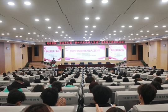 為引導(dǎo)廣大青年學(xué)生形成積極健康的婚戀觀與家庭觀,12月4日下午,由陜西省婦女聯(lián)合會(huì)指導(dǎo),陜西省婚姻家庭服務(wù)與研究基地、商洛市婦女聯(lián)合會(huì)聯(lián)合主辦,商洛職業(yè)技術(shù)學(xué)院承辦的“新時(shí)代家庭觀大宣講”進(jìn)高校主題實(shí)踐活動(dòng)在商洛職業(yè)技術(shù)學(xué)院圖書(shū)館報(bào)告廳舉行;顒(dòng)以“樹(shù)立正確婚戀觀,走好幸福人生路”為主題。商洛市婦聯(lián)主席胡燕梅,商洛職業(yè)技術(shù)學(xué)院黨委副書(shū)記、工會(huì)主席吳雪,副院長(zhǎng)李承濤,陜西省婚姻家庭服務(wù)與研究基地負(fù)責(zé)人,西安培華學(xué)院女子學(xué)院副院長(zhǎng)李蒙,骨干教師秦園,基地專(zhuān)家團(tuán)成員及師生代表共200余人參加了活動(dòng)。