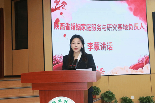 西安培華學(xué)院女子學(xué)院副院長(zhǎng)李蒙代表陜西省婚姻家庭服務(wù)與研究基地講話(huà)。她深刻闡述了新時(shí)代背景下樹(shù)立正確婚戀觀、加強(qiáng)家庭建設(shè)的重大意義,表示這是響應(yīng)黨的二十大號(hào)召、筑牢社會(huì)和諧基石的關(guān)鍵舉措。她詳細(xì)介紹了基地在構(gòu)建“四位一體”發(fā)展格局、打造系統(tǒng)化工作體系方面取得的成效,特別是通過(guò)“新時(shí)代家庭觀進(jìn)高校示范院校聯(lián)盟”將理論研究成果轉(zhuǎn)化為服務(wù)青年、服務(wù)社會(huì)的生動(dòng)實(shí)踐。