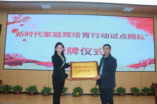 現(xiàn)場(chǎng)舉行了“新時(shí)代家庭觀培育行動(dòng)試點(diǎn)院校”授牌儀式,省基地負(fù)責(zé)人李蒙為商洛職業(yè)技術(shù)學(xué)院授牌。