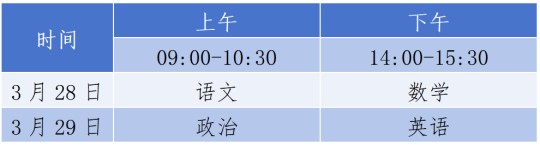考生按照準考證上的考點信息于2026年3月28日至29日參加文化考試。文化考試時間安排如下: