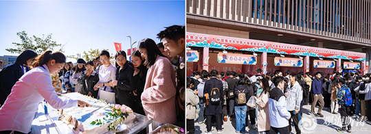 美食文化節現場人聲鼎沸,熱鬧非凡,各食堂展位依次排開,攤位前擠滿品嘗美食的師生。食堂師傅們各展技藝,為師生呈現一場風味美食盛宴。減脂餐、低卡蛋糕、鰻魚飯團等健康輕食,新疆切糕、北京鹵煮火燒、網紅鵝肝漢堡等風味美食,百余種具有海大特色的菜肴和小吃,讓人既飽口福又飽眼福。