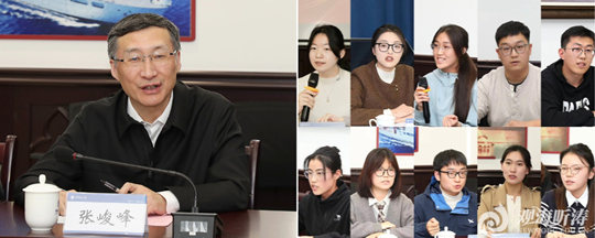 張峻峰認真傾聽同學們的發言,對大家學習貫徹習近平總書記重要回信精神取得的學習與實踐成效給予充分肯定。他指出,一年來,學校深入貫徹落實習近平總書記給學校全體師生重要回信精神,深入實施“5135”發展戰略,深入實施藍夢宏才培育計劃,持續加強學生思想政治工作,不斷優化人才培養模式,人才培養質量持續提升,學校事業發展取得顯著成效。他結合學校有關工作開展情況和自己的經歷,就同學們關心的問題進行深入探討和交流,并對同學們提出希望和建議。他希望同學們持續深入學習貫徹習近平總書記重要回信精神,紅色鑄魂,藍色筑夢,筑牢理想信念根基,將專業學習研究與國家戰略需求緊密結合,刻苦學習,勇于創新,勤于實踐,注重知行合一,全面提升能力本領,努力成長為胸懷藍色夢想、堪當時代重任的優秀海洋人才。